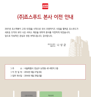 (주)죠스푸드 본사 이전 안내